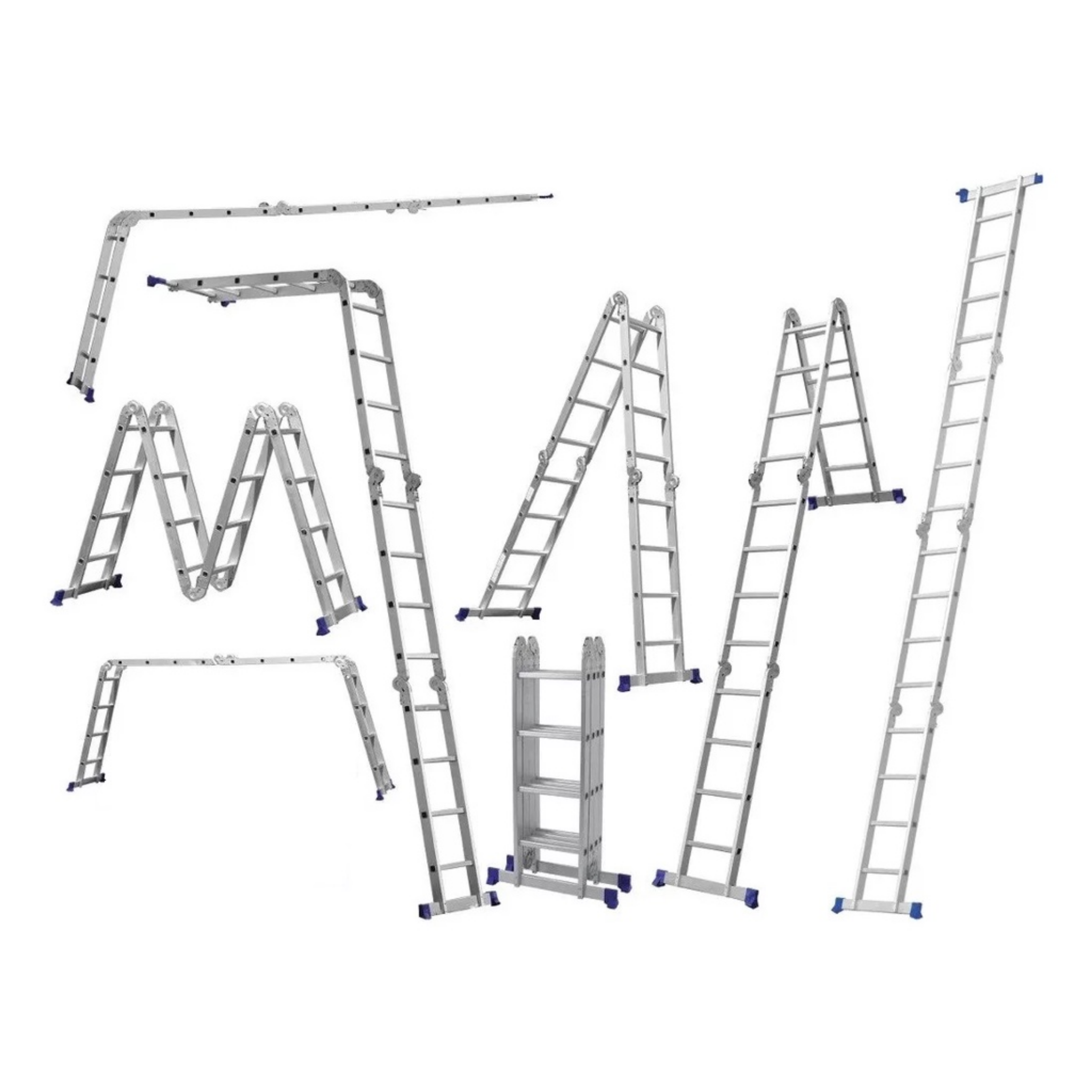 A Escada Extensível de Alumínio com 10 degraus é multifuncional, podendo ser utilizada de quatro maneiras diferentes. Com altura ajustável de 3,09m a 5,65m e capacidade para 120kg, é ideal para trabalhos em altura, oferecendo segurança e praticidade em instalações, pinturas e manutenções. Palavras-chave: escada extensível, escada de alumínio, multifuncional 4 em 1, trabalhos em altura, equipamentos de acesso.